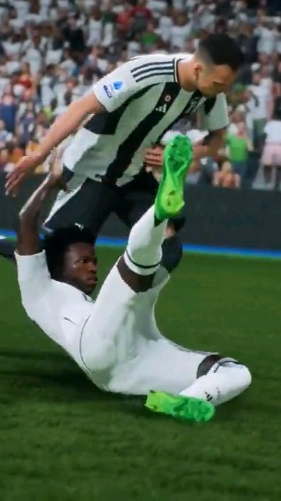 This is a player pushing Vinicius Jr and vinicius jr fell so by accident he kicked him.
